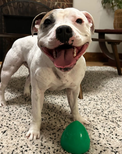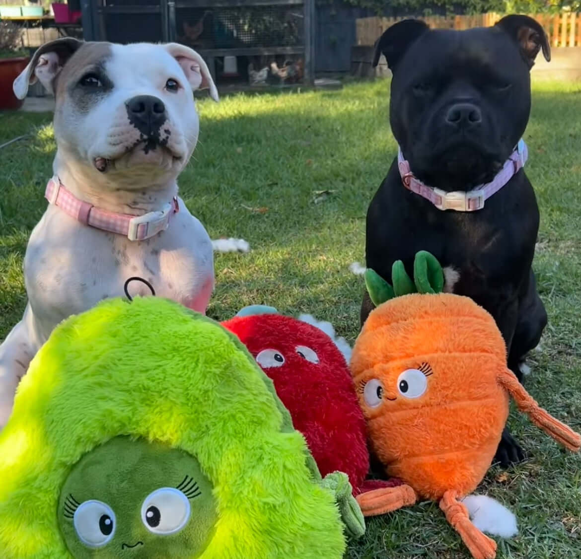 We are Staffy Owners - We were sick of dog toys that didn't last and wanted something gentle on our dogs gums and teeth!
